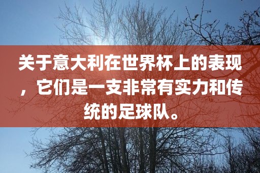 关于意大利在世界杯上的表现,它们是一支非常有实力和传统的足球队。