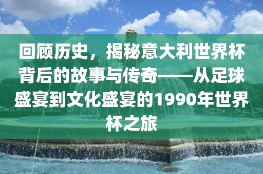 摘要:本文回顾了历史,揭示了意大利世界杯背后的故事与传奇。文章聚焦于1990年世界杯之旅,从足球盛宴到文化盛宴的转变,展现了世界杯不仅仅是足球比赛,更是文化的交流和展示。通过回顾这一历史时刻,让读者了解世界杯背后的故事和传奇。