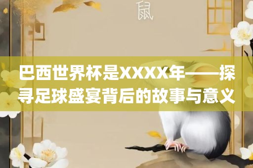 XXXX年的巴西世界杯是一场足球盛宴,也是全球文化交流和体育精神展示的重要舞台,它不仅让人们感受到了足球的魅力,也让人们看到了运动员们的拼搏精神和团队精神,巴西世界杯对于全球足球运动和社会文化产生了深远的影响和启示,让我们共同铭记这一历史时刻,为足球运动的发展和创新贡献自己的力量。