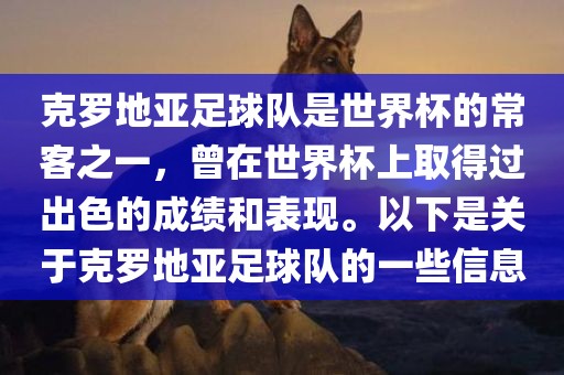 克罗地亚足球队是世界杯的常客之一,曾在世界杯上取得过出色的成绩和表现。以下是关于克罗地亚足球队的一些信息