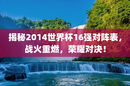 四年一度的世界杯足球盛宴再次点燃战火,全球球迷瞩目的焦点齐聚一堂,在这篇文章中,我们将为您揭晓备受期待的2014世界杯16强对阵表,带您领略这场足球盛宴的荣耀对决,让我们共同期待这场激烈的角逐,见证每一个精彩瞬间!