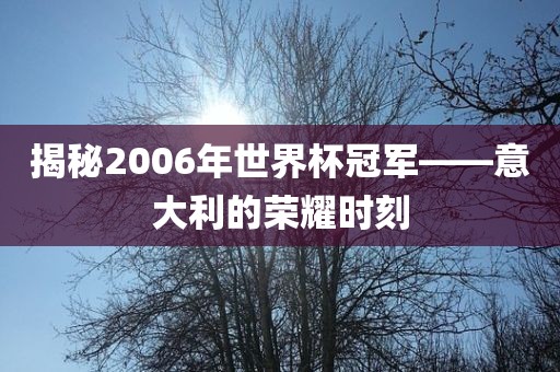 揭秘2006年世界杯冠军——意大利的荣耀时刻