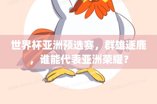 世界杯亚洲预选赛即将拉开帷幕,群雄逐鹿,谁能代表亚洲荣耀?让我们拭目以待,作为自媒体作者,我将持续关注比赛动态,为您带来最新的赛事资讯和深度分析,让我们一起为亚洲足球加油,共同见证这场足球盛宴的辉煌时刻。