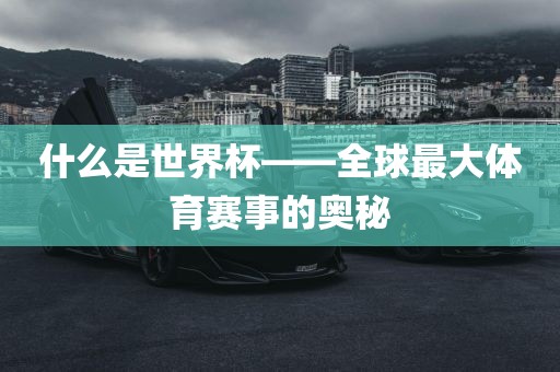 世界杯,这个词汇在全球范围内都如雷贯耳,无人不知无人不晓,究竟什么是世界杯呢?本文将为您揭开世界杯的神秘面纱,带您深入了解这一全球最大体育赛事的起源、发展、赛制以及影响力。