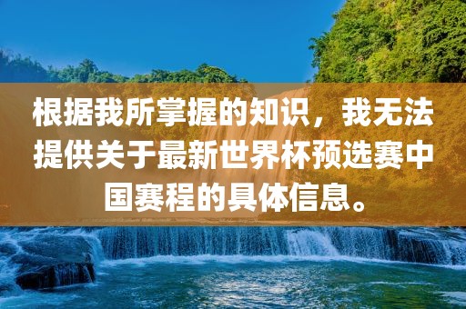 根据我所掌握的知识,我无法提供关于最新世界杯预选赛中国赛程的具体信息。