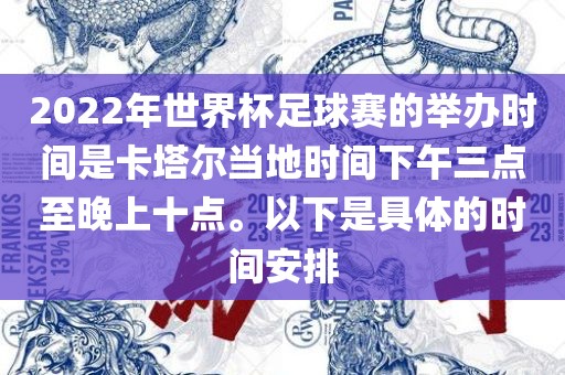 2022年世界杯足球赛的举办时间是卡塔尔当地时间下午三点至晚上十点。以下是具体的时间安排