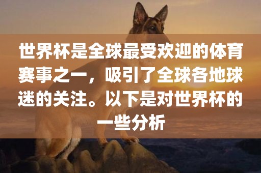 世界杯是一个充满变数和挑战的赛事,需要综合考虑各种因素来进行分析和预测,除了以上几点分析,还需要关注比赛的具体情况和实时变化,以便更好地了解比赛的进展和结果。