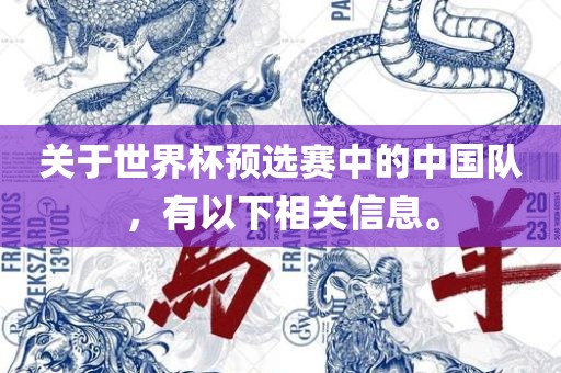 关于世界杯预选赛中的中国队,有以下相关信息。