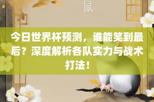 转载请注明来自永康市本千工贸有限公司,本文标题:《今日世界杯预测,谁能笑到最后?深度解析各队实力与战术打法!》