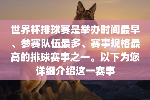 摘要:世界杯排球赛是一项历史悠久、规模盛大的排球赛事,具有最早举办时间、最多参赛队伍和最高赛事规格。该赛事吸引了全球最优秀的排球队伍参加,是展示排球运动最高水平的舞台。